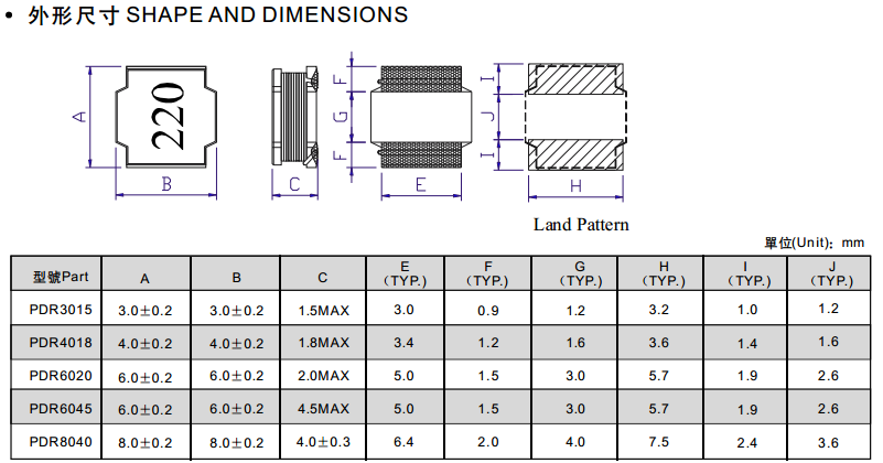 PDR6045-680MT功率電感屬風(fēng)華電感 說明:超??; 開放式結(jié)構(gòu); 適合表面貼裝
