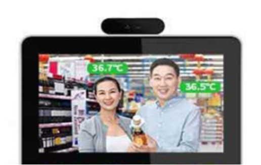 在大屏上安裝熱成像雙光測(cè)溫模塊,直接實(shí)現(xiàn)廣告播放及多人測(cè)溫。有人時(shí)測(cè)溫,無人時(shí)播放廣告。