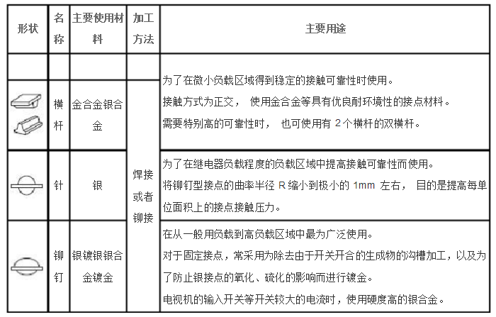(6)接點(diǎn)的形狀和種類(lèi)