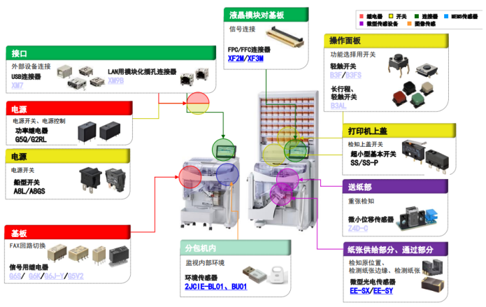 b、紙張供給部分、通過部分:檢知原位置、檢測紙張邊緣、檢測紙張、原點界限檢測:微型光電傳感器:EE-SX\EE-SY