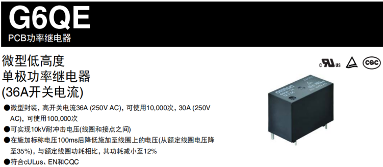 要想達(dá)到小體積高容量,歐姆龍G6QE閃亮登場(chǎng),30*16*20.5mm的小身材卻能承受36A的大電流,無(wú)疑是個(gè)奇跡。讓炒菜機(jī)器人可以達(dá)到8000W的火力,無(wú)論是煎炒烹炸無(wú)所不能!