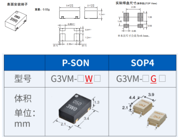 僅有3.4*2.1*1.3mm,僅為SOP4引腳封裝面積的1/4,可以實(shí)現(xiàn)更高密度的貼片安裝,實(shí)現(xiàn)更小型化,更多通道,更多功能;