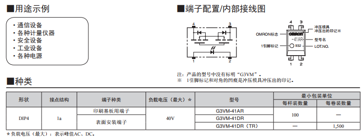 G3VM-41DR MOS FET歐姆龍繼電器