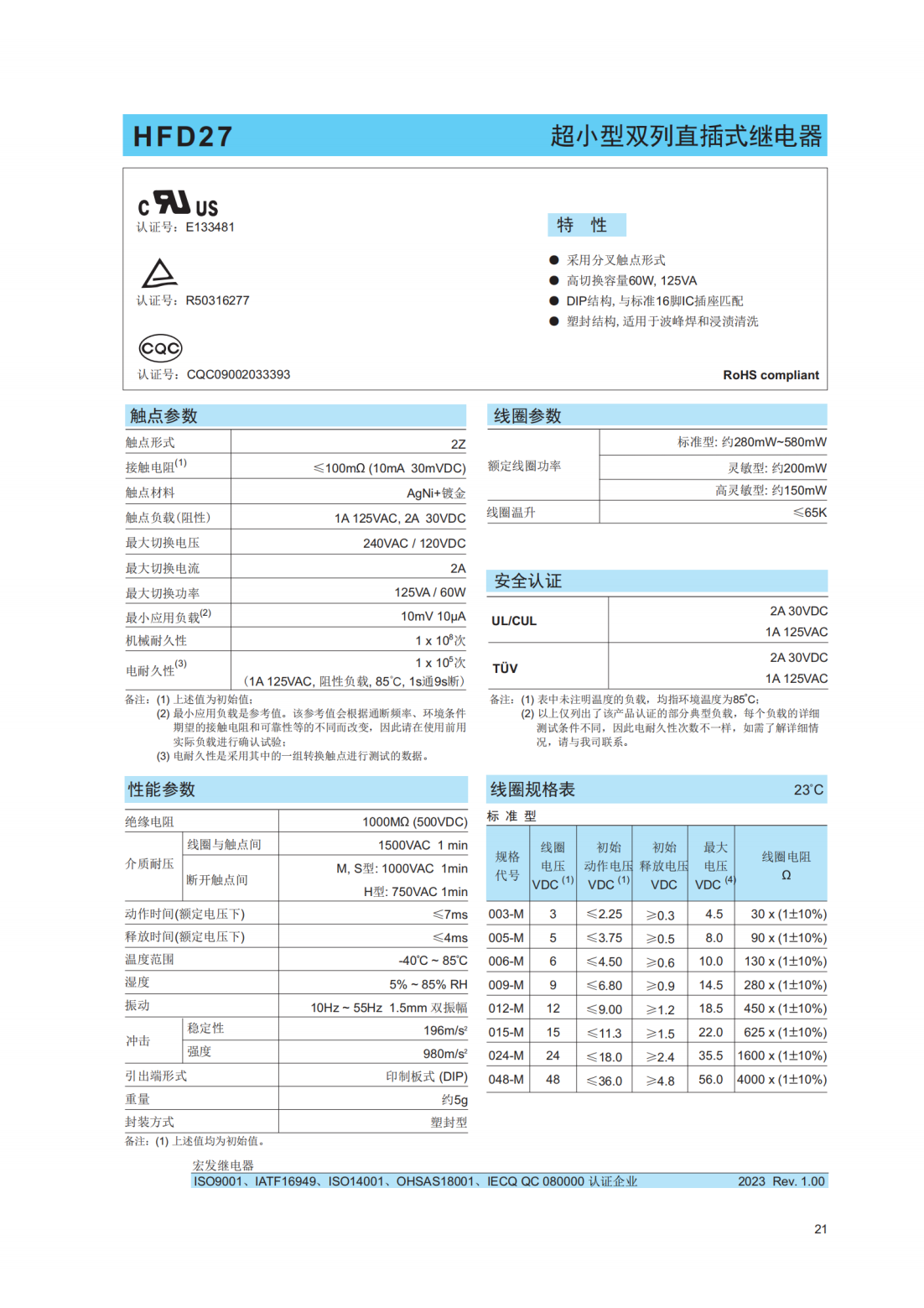 HFD27-005-M宏發(fā)繼電器