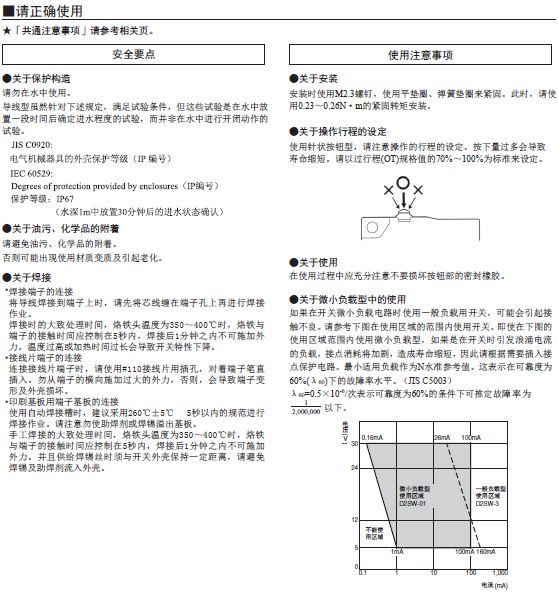 針狀按鈕型為自由位置和總行程位置上的數(shù)值,擺桿型為總行程位置上的數(shù)值。 接點的閉路或開路在1ms以內(nèi)。 |