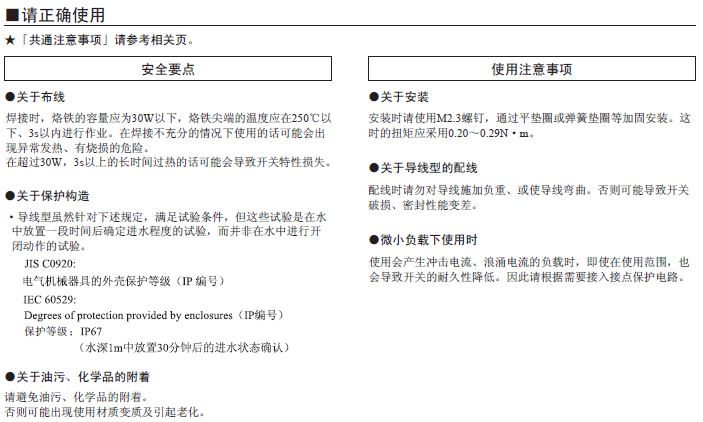 針狀按鈕型有自由位置和動(dòng)作限度位置、擺桿為動(dòng)作限度位置時(shí)的值。 接點(diǎn)為開路和閉路1ms以內(nèi)。 |