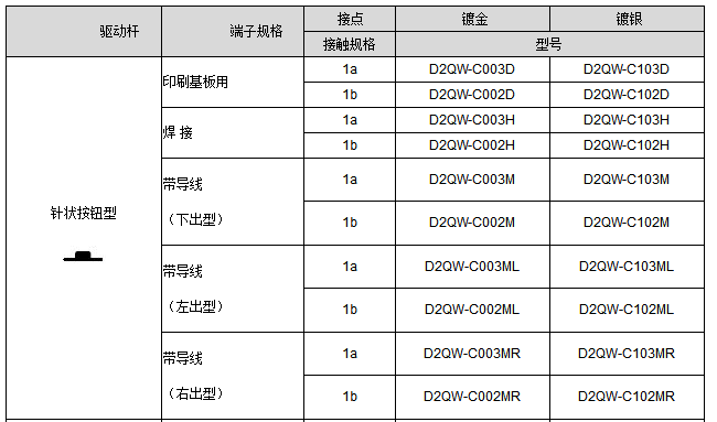 D2QW系列密封型極小型基本開關(guān)