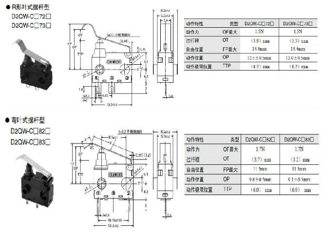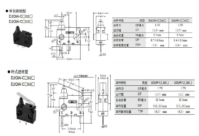 D2QW系列 密封型極小型基本開關(guān) 高可靠性和耐環(huán)境性兼?zhèn)涞拈L(zhǎng)行程密封型開關(guān)