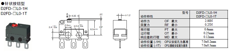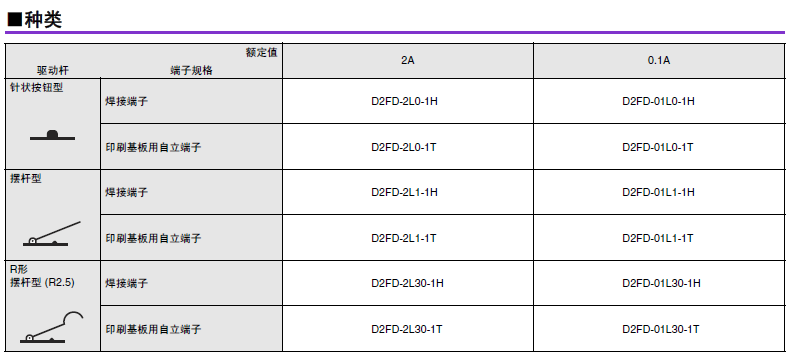 D2FD-2 超級小型基本開關(guān) 兼具防塵功能的極超小型基本開關(guān) 利用橡膠封裝的密封結(jié)構(gòu)實現(xiàn)防塵 (IEC IP6X)??稍谟谢覊m、紙粉的環(huán)境下使用。 可動片為1片彈簧構(gòu)造,支持AC125V 2A開關(guān),更有微小負載型可供選擇。 還備有焊接、印刷基板用端子。