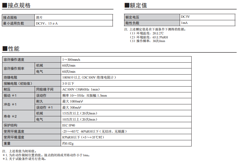 「社內較小級」可實現(xiàn)高精度動作的檢測開關 (寬3.0mm×長3.5mm×厚0.9mm) 小型及薄型,為機器的小型化、薄型化作貢獻。 特定的接點機構,實現(xiàn)了高精度的動作位置及高可靠性的接觸。 長行程提高了使用的便捷性。 接觸規(guī)格(1a、1b)及多種擺桿,可適合范圍寬廣的各種用途。