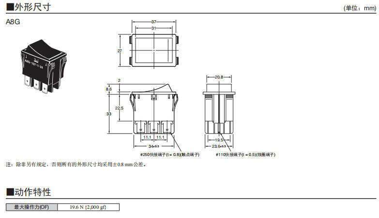 A8G系列船型歐姆龍開關(guān)