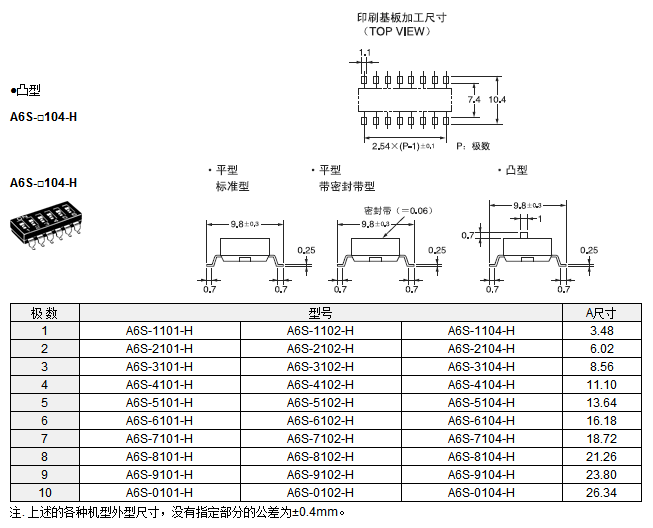 A6HF-□102(-P)滑動型DIP開關(guān)