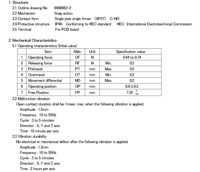 印刷基板用端子還備有獨立端子、直角端子。鼠標開關的型號有: