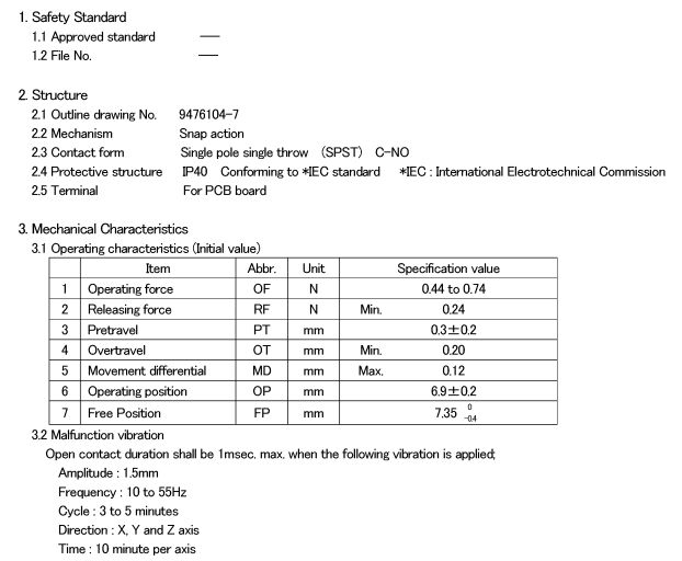 印刷基板用端子還備有獨(dú)立端子、直角端子。鼠標(biāo)開(kāi)關(guān)的型號(hào)有: