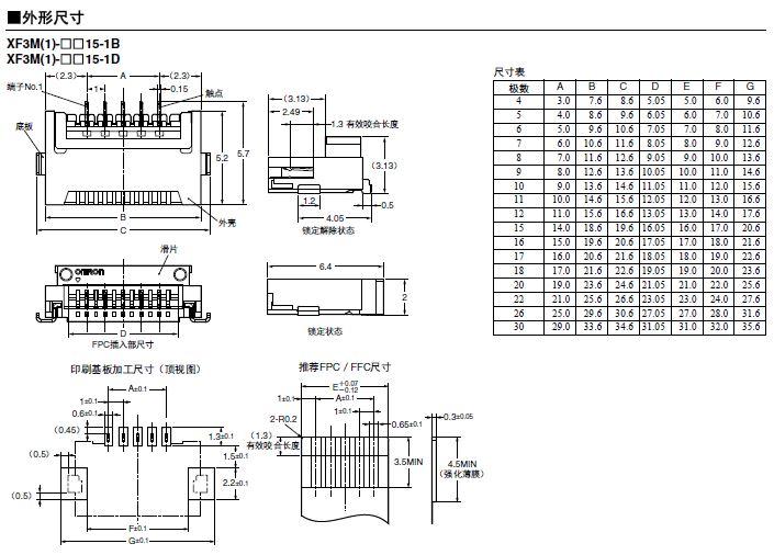 XF3M 旋轉(zhuǎn)后鎖結(jié)構(gòu)(端子間距0.5mm、1.0mm、雙面觸點(diǎn)類型)