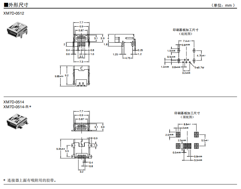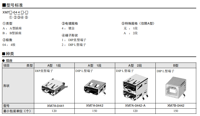符合USB標(biāo)準(zhǔn)的 小型接口連接器 符合USB2.0標(biāo)準(zhǔn)。 插拔次數(shù)可達(dá)1,500次。 A型插座封裝在計(jì)算機(jī)主體、USB集線器等上,B型插座封裝在調(diào)制解調(diào)器、掃描儀、鼠標(biāo)等計(jì)算機(jī)外圍設(shè)備上。 有無認(rèn)證規(guī)格,請(qǐng)參見“規(guī)格認(rèn)證”。