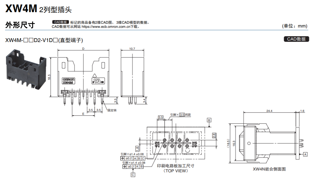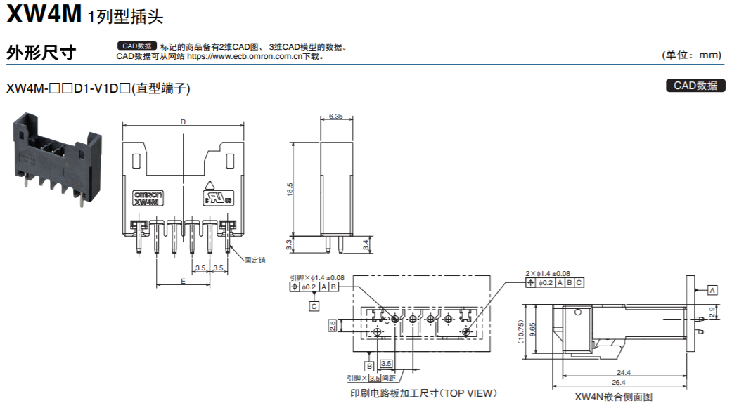 XW4M/XW4N 3.5mm間距基板用連接器