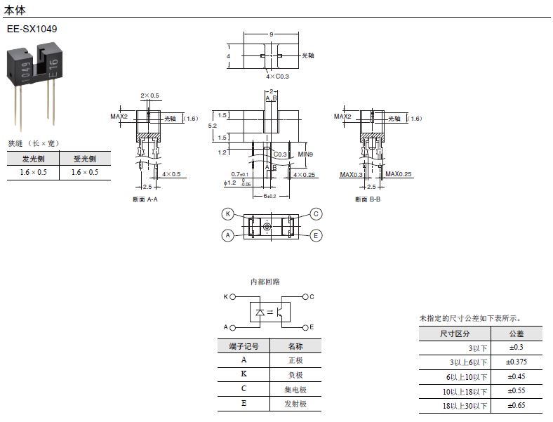 EE-SX1049 微型光電傳感器(透過型)