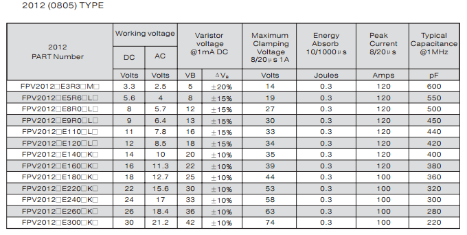 特征: 1、疊層片式陶瓷結(jié)構(gòu)。 2、無引線。 3、溫度范圍:-55℃~+125 ℃。 4、工作電壓范圍V w(dc)=3.3~ 615V。 5、具有雙向限制特性,適合ESD保護(hù)。 6、漏電流非常小。 7、寄生電感小、響應(yīng)速度快(響應(yīng)時間少于0.5ns)。 8、優(yōu)良的溫度系數(shù)。 9、良好的焊接性能(端電極為三層電鍍)。 應(yīng)用: 1、防止過電壓:當(dāng)施加的電壓升高到壓敏電壓時,壓敏電阻器的電流急劇上升,被保護(hù)設(shè)備的浪涌電壓迅速減小,從而使裝有壓敏電阻器的設(shè)備抗浪涌噪聲能力達(dá)到相應(yīng)要求。